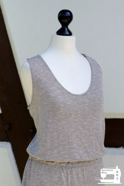Avec la surjeteuse, peu de difficulté. Peut-être juste faire attention à ne pas trop étirer le tissu lors de son passage à la machine. Ce petit défaut est visible sur l'ourlet de la jupe
